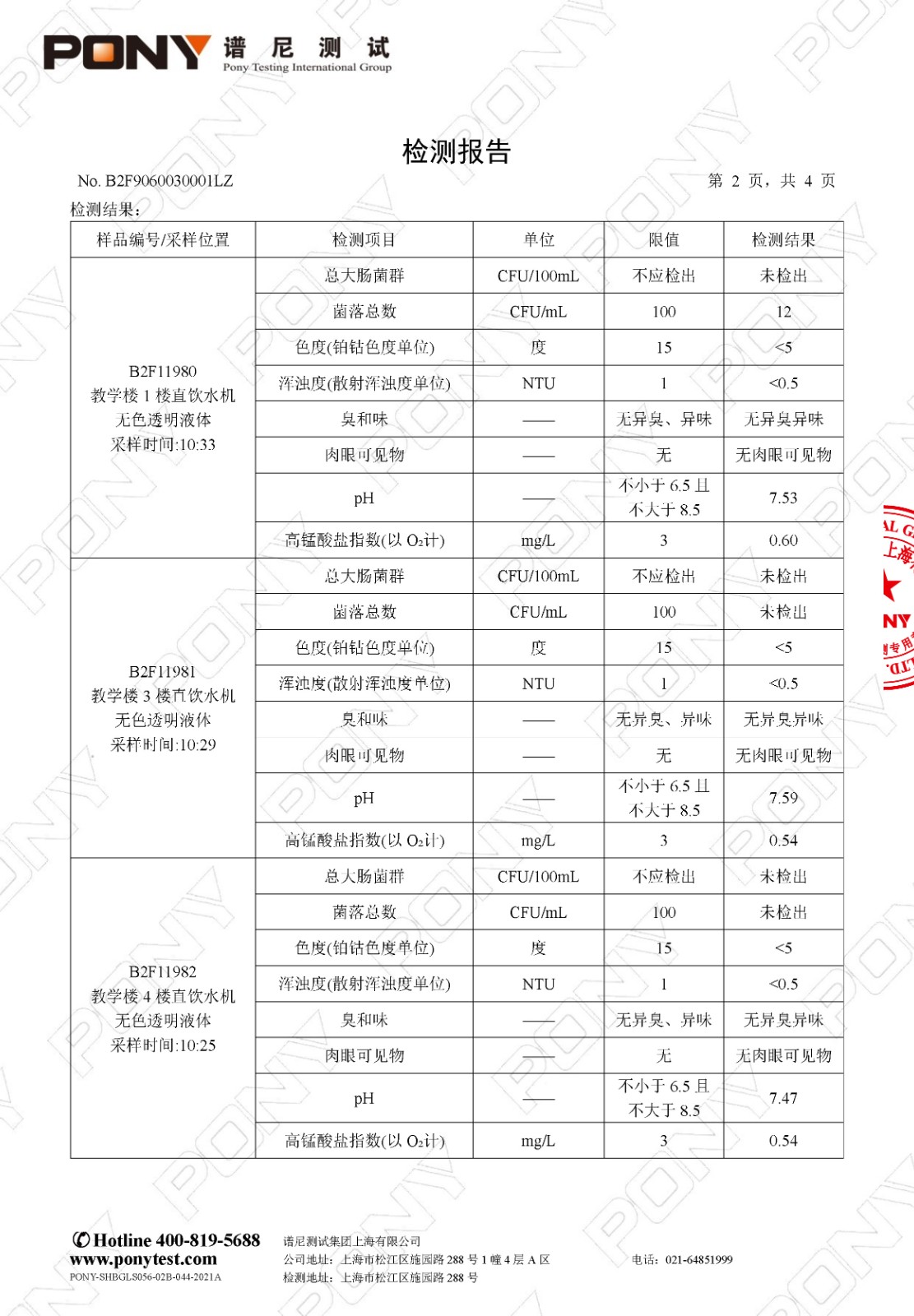 【健康促进】2025学年第一学期直饮水检测报告(09月)—— 总校