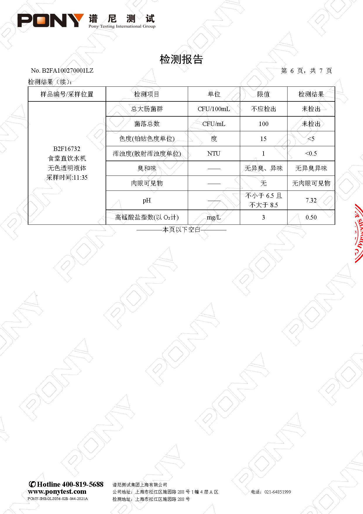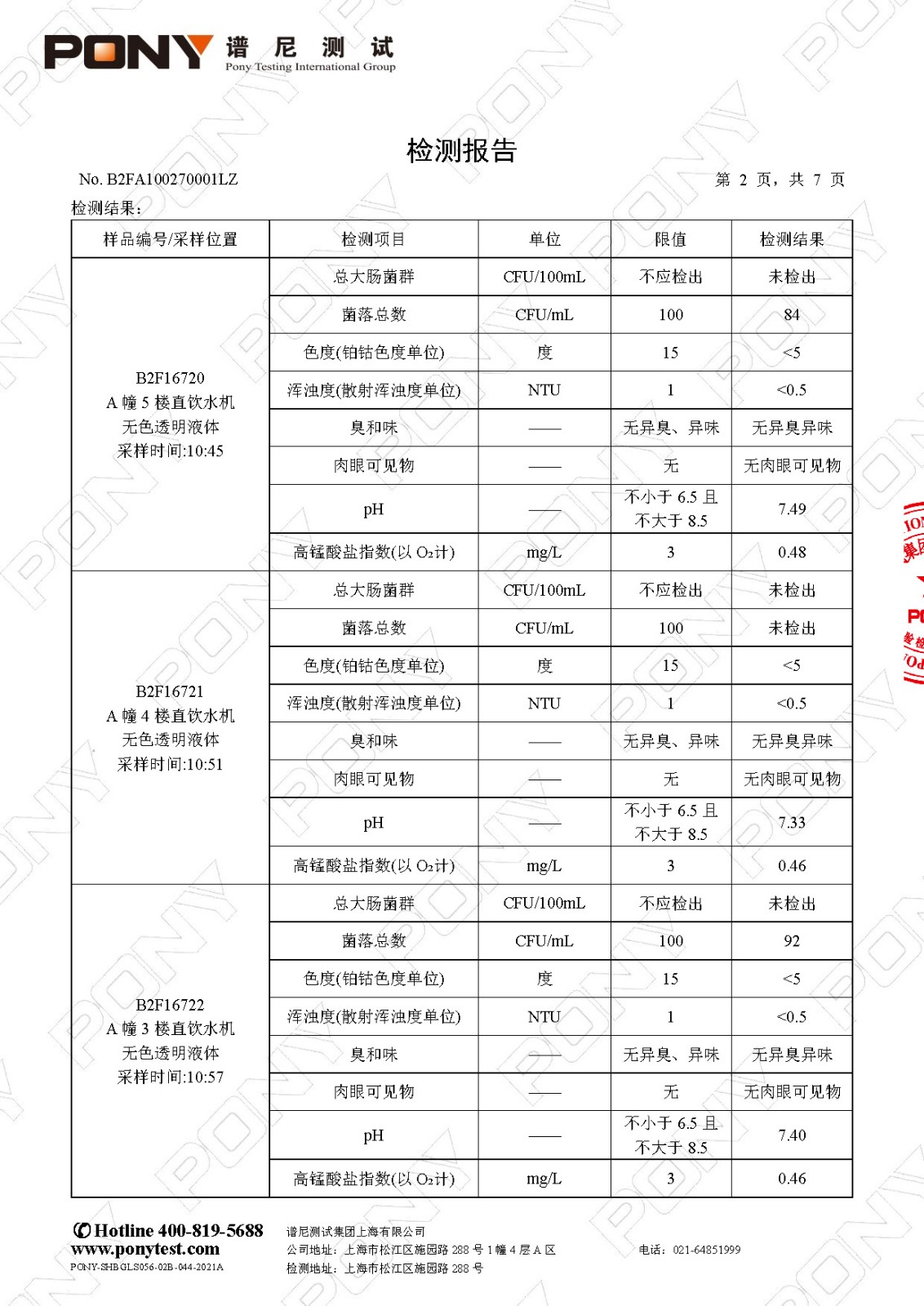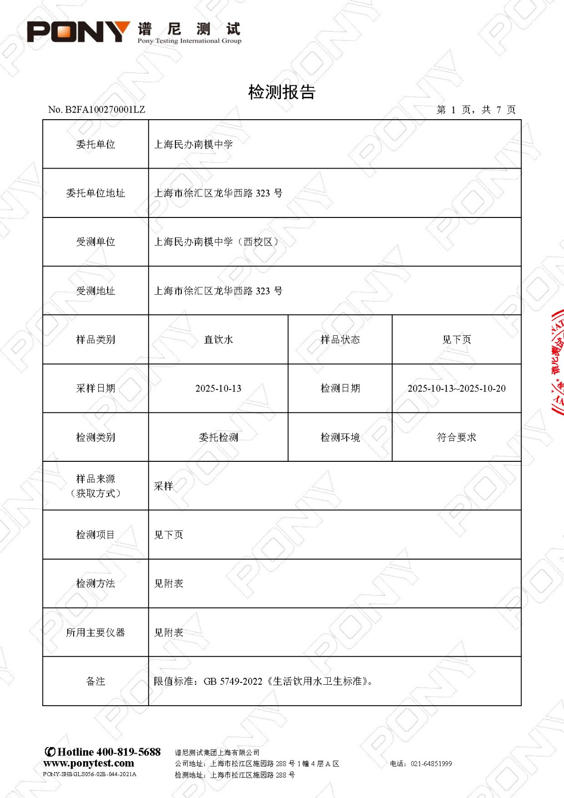 【健康促进】2025学年第一学期直饮水检测报告(10月)—— 西校区