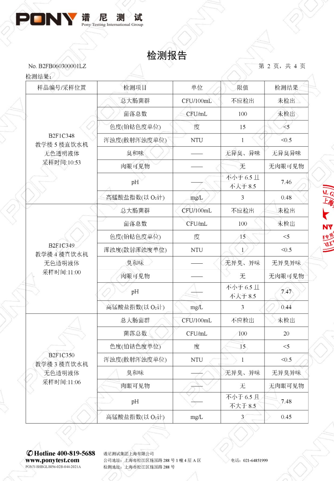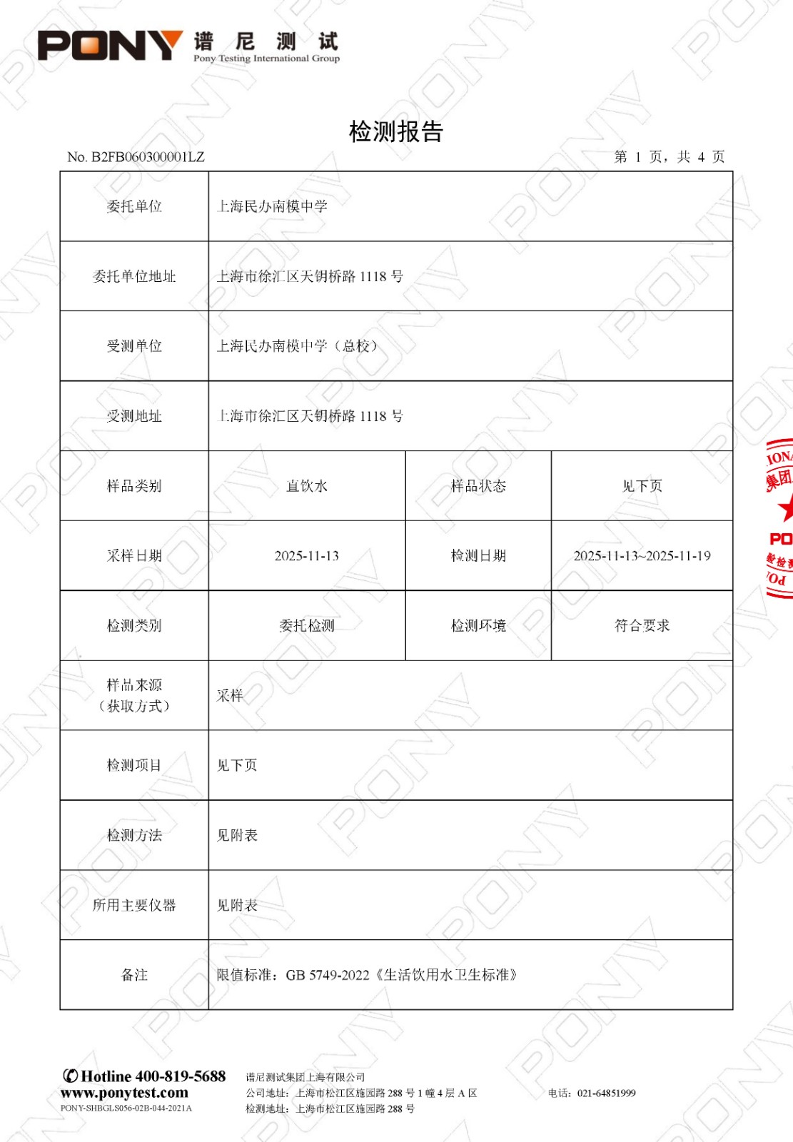 【健康促进】2025学年第一学期直饮水检测报告(11月)—— 总校