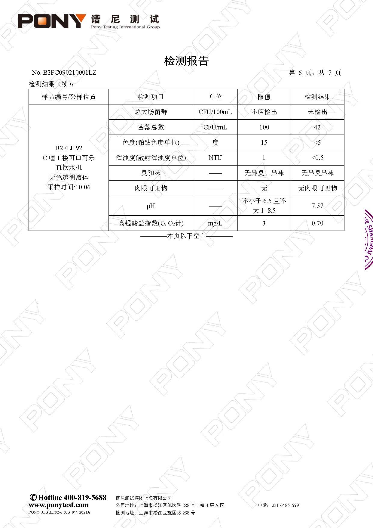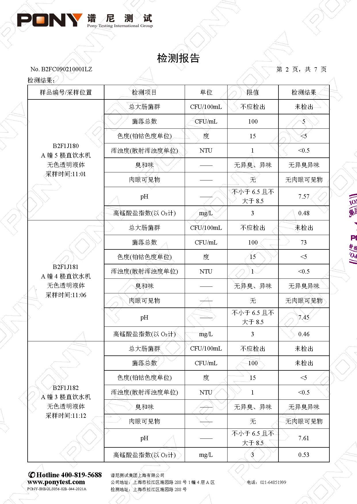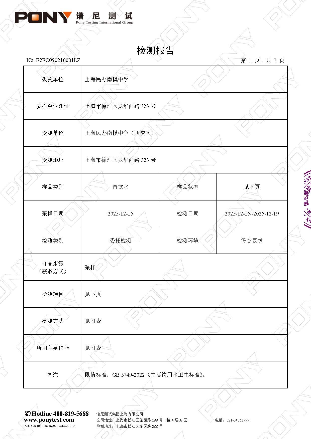 【健康促进】2025学年第一学期直饮水检测报告(12月)—— 西校区