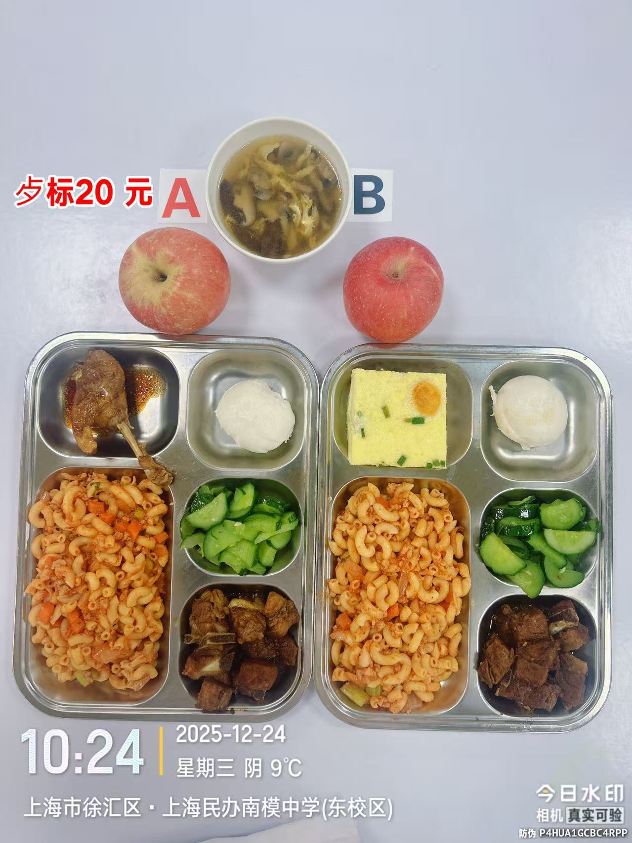 【健康促进】东校区午餐样菜照片2025.12.22-2025.12.26