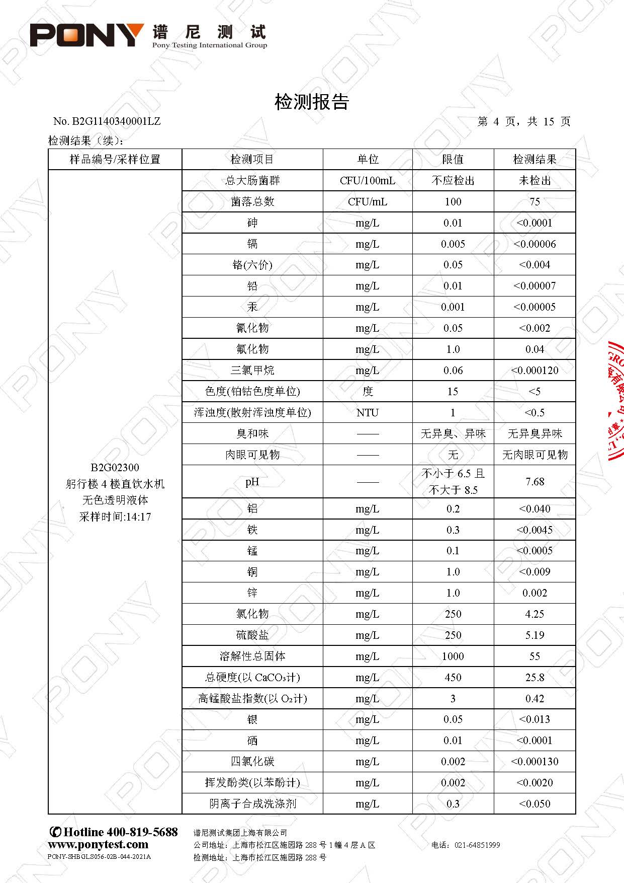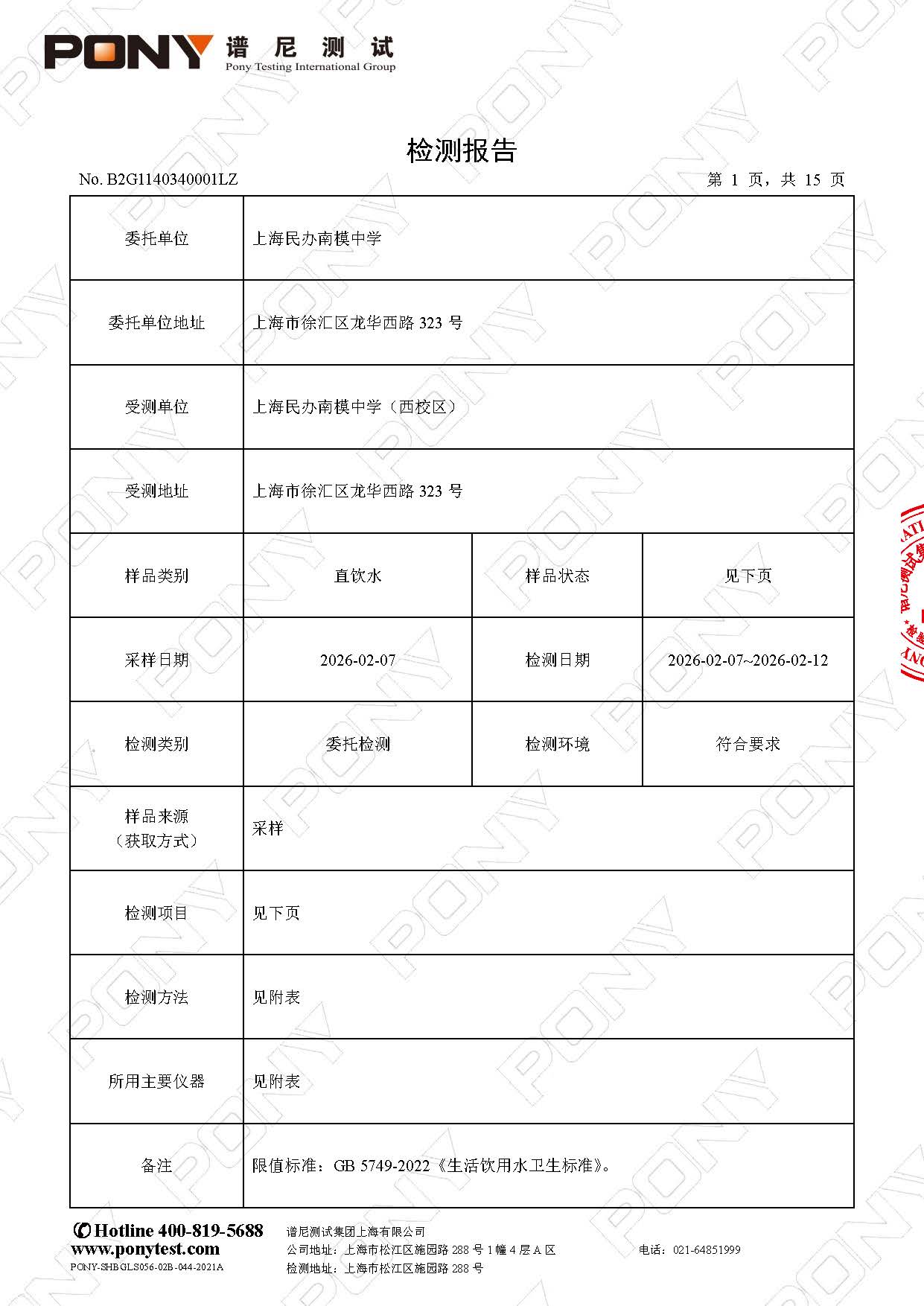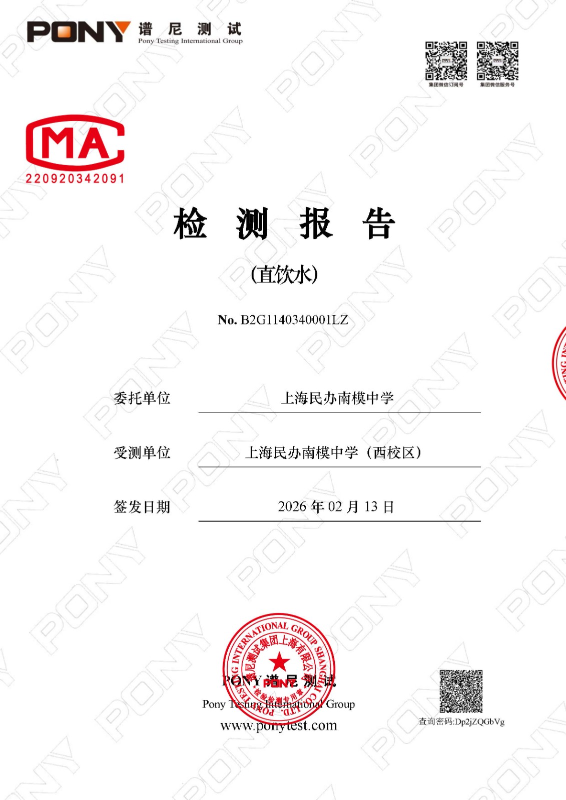 【健康促进】2025学年第二学期直饮水检测报告(2月)—— 西校区