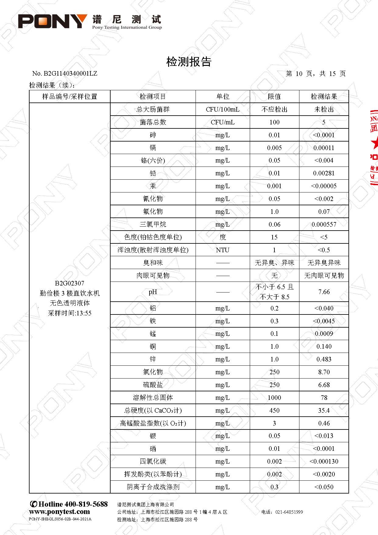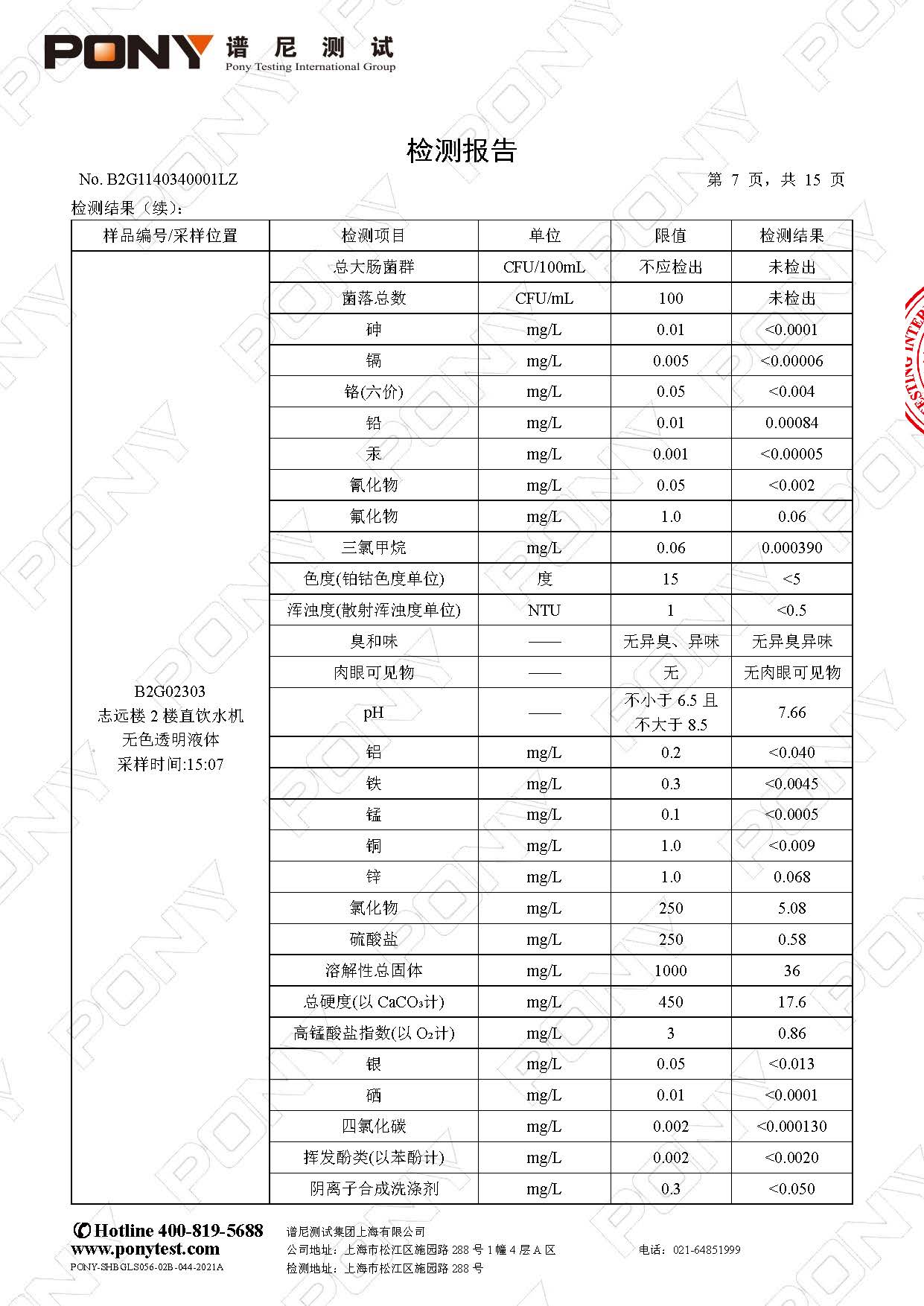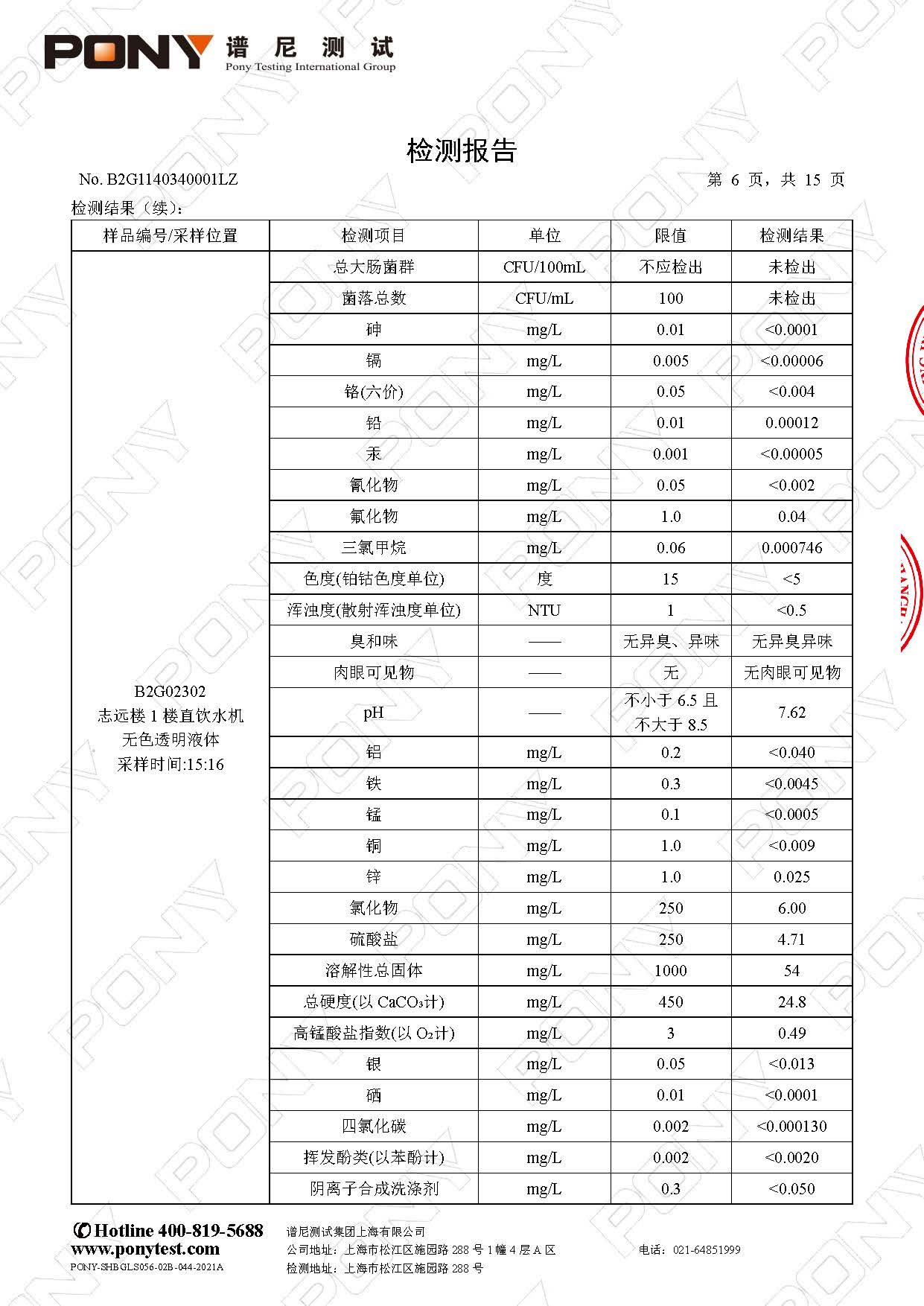 【健康促进】2025学年第二学期直饮水检测报告(2月)—— 西校区