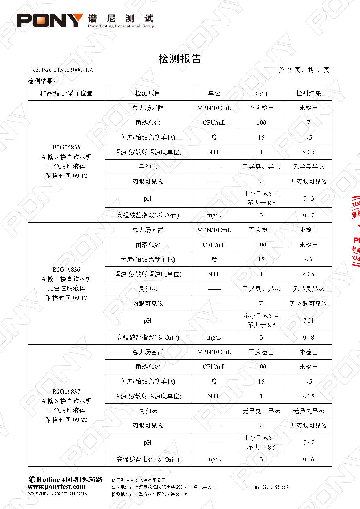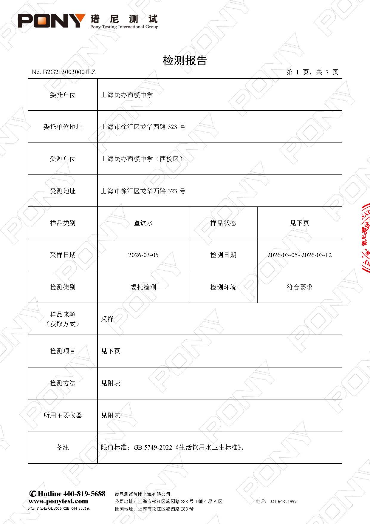 【健康促进】2025学年第二学期直饮水检测报告(3月)—— 西校区
