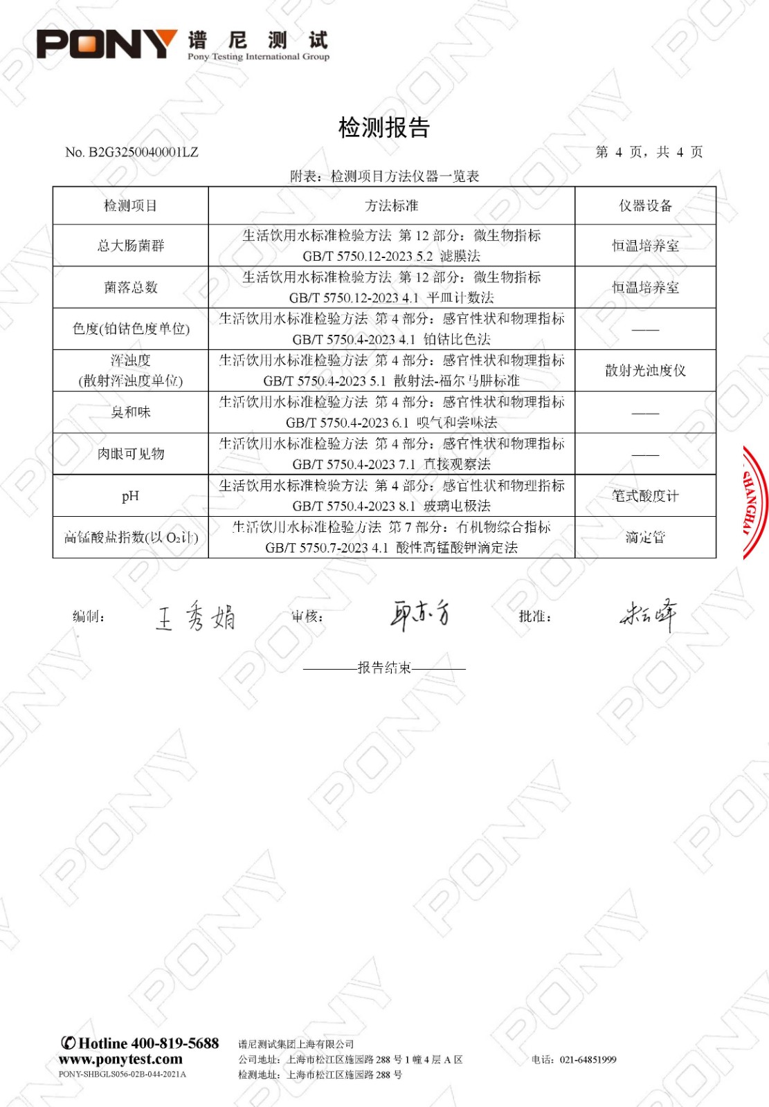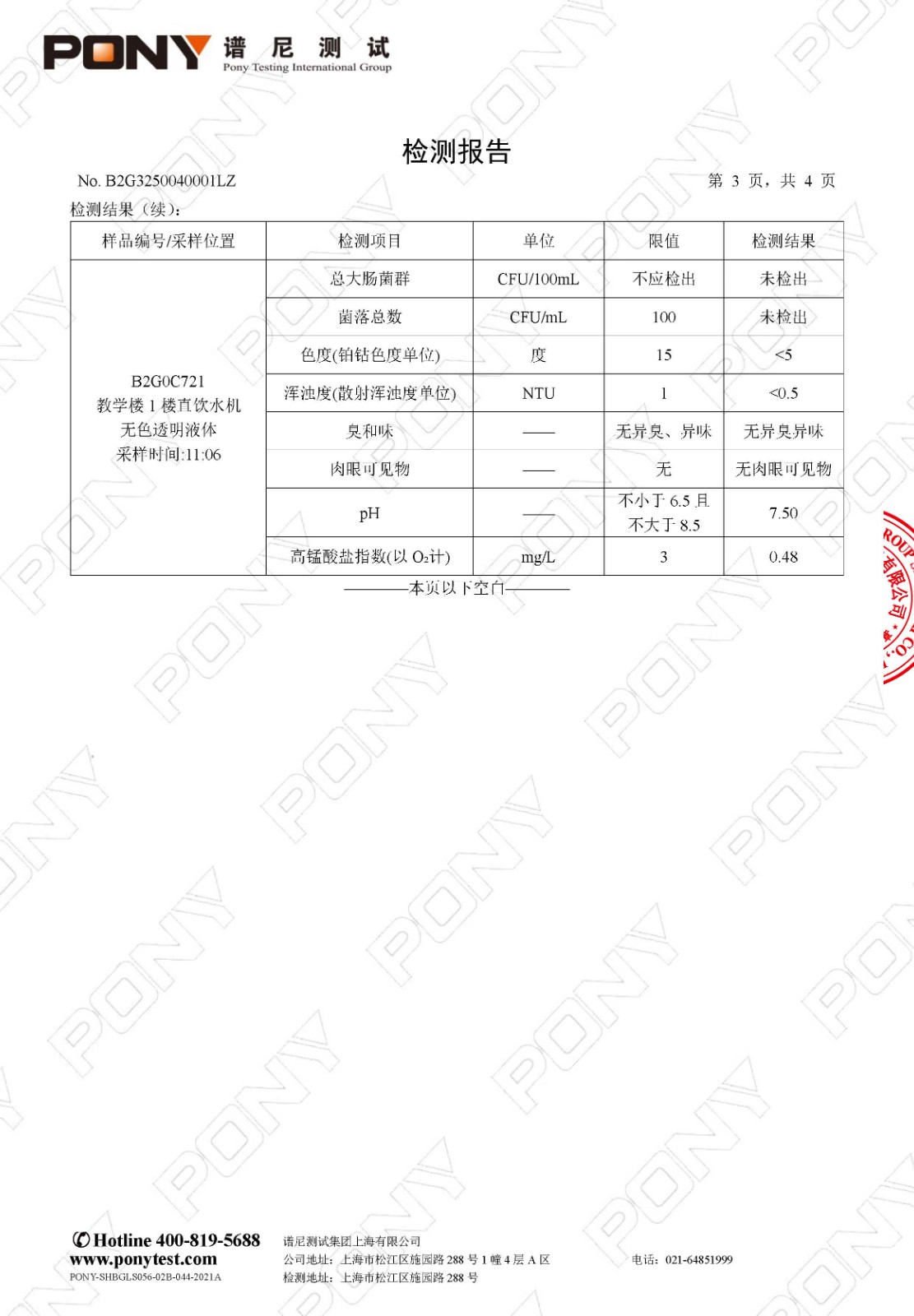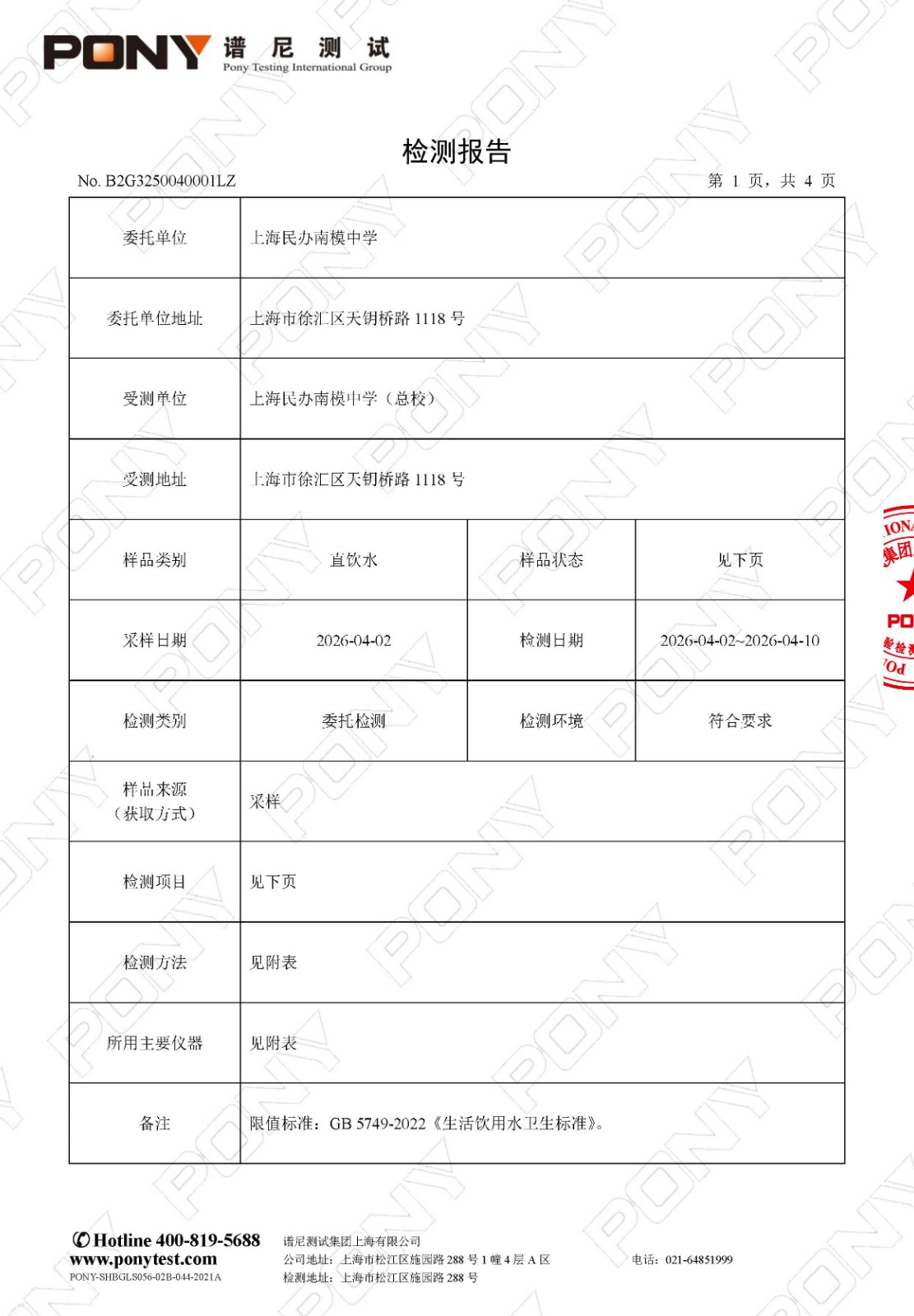 【健康促进】2025学年第二学期直饮水检测报告(4月)—— 总校